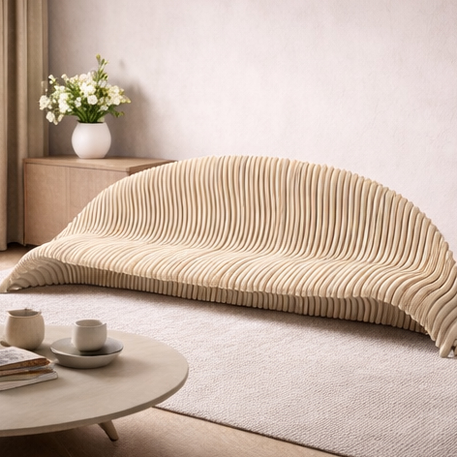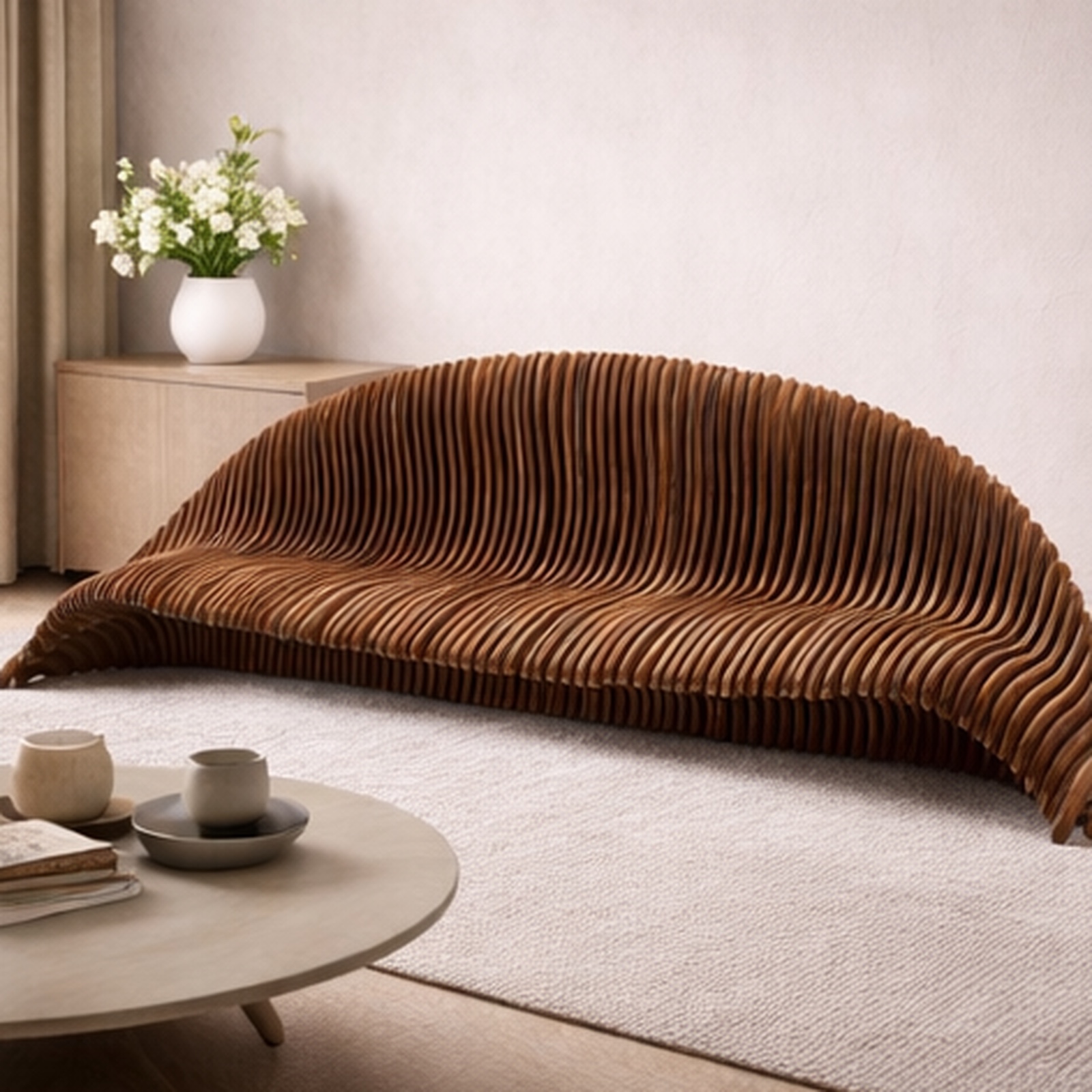 - A Curvilinear Slat Bench combines smooth flowing curves with a series of evenly spaced slats to create a form that is both functional and sculptural. The curved design provides comfort and visual movement, while the slatted construction adds rhythm, lightness, and structural strength.