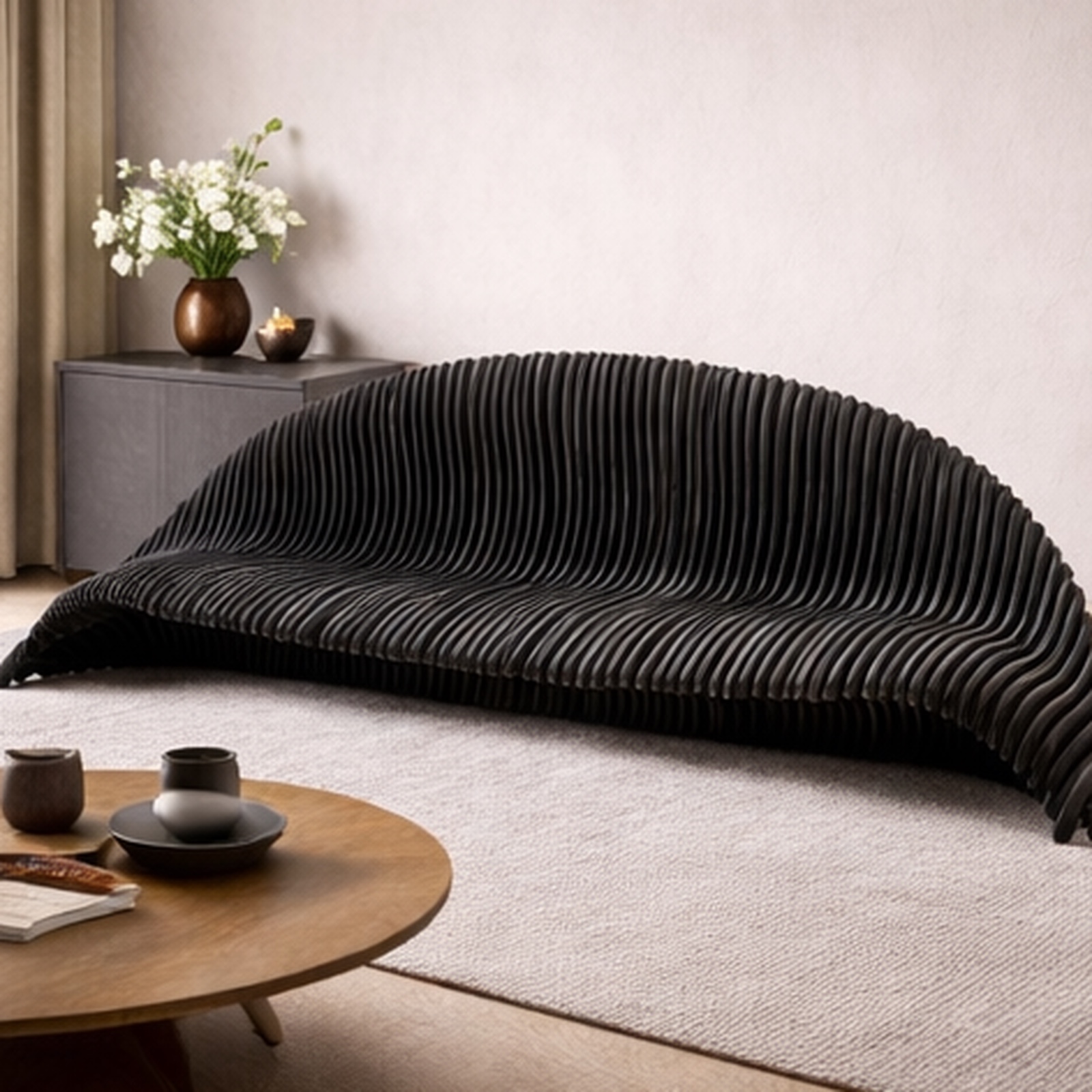 - Blending modern aesthetics with skilled craftsmanship, the bench transforms a simple seating piece into a striking contemporary design element suitable for both interior and outdoor spaces.